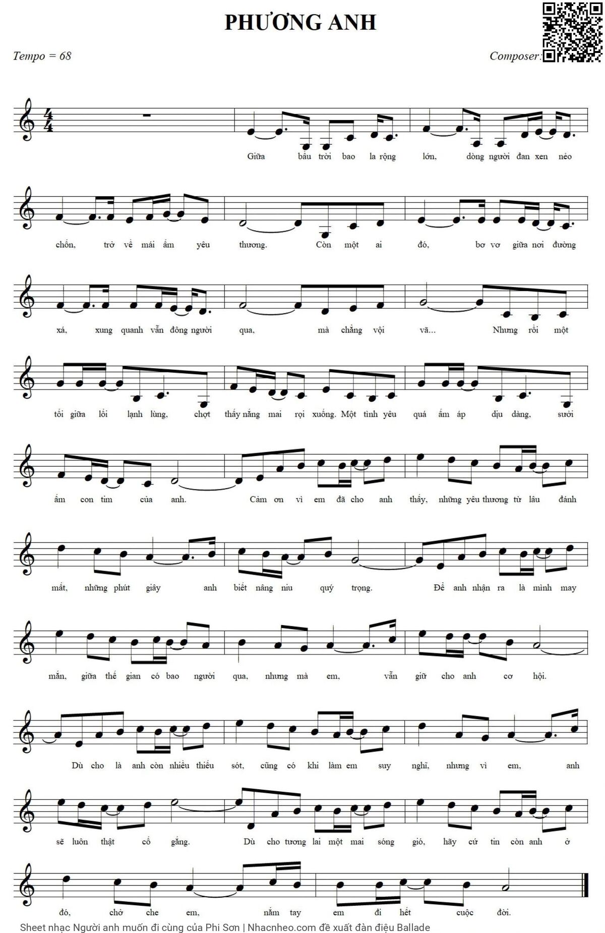 Phi Sơn Giữa bầu trời bao la rộng lớn Dòng người đan xen nẻo chốn [PDF] [Sheet] [Lyrics] [Mp4/Midi]