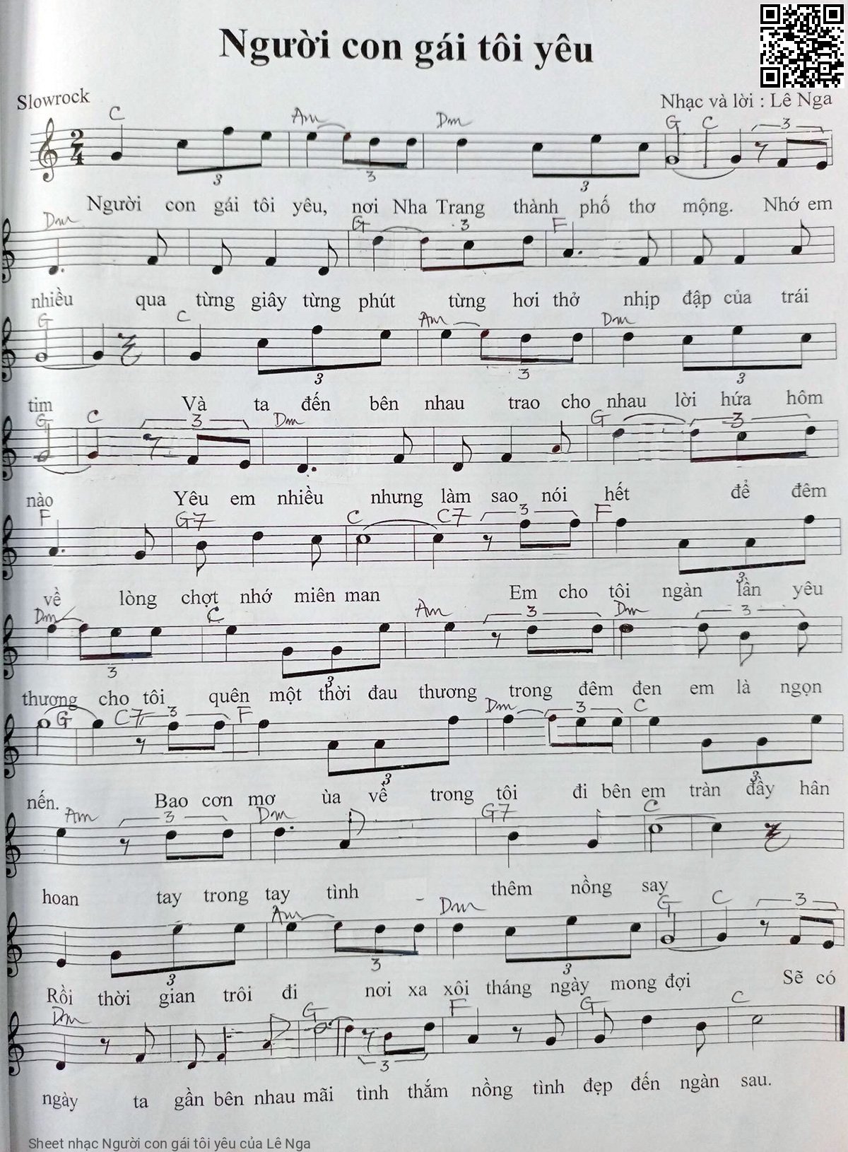 Lê Nga Người con gái tôi yêu Nơi Nha Trang thành phố thơ mộng [PDF] [Sheet] [Lyrics] [Mp4/Midi]