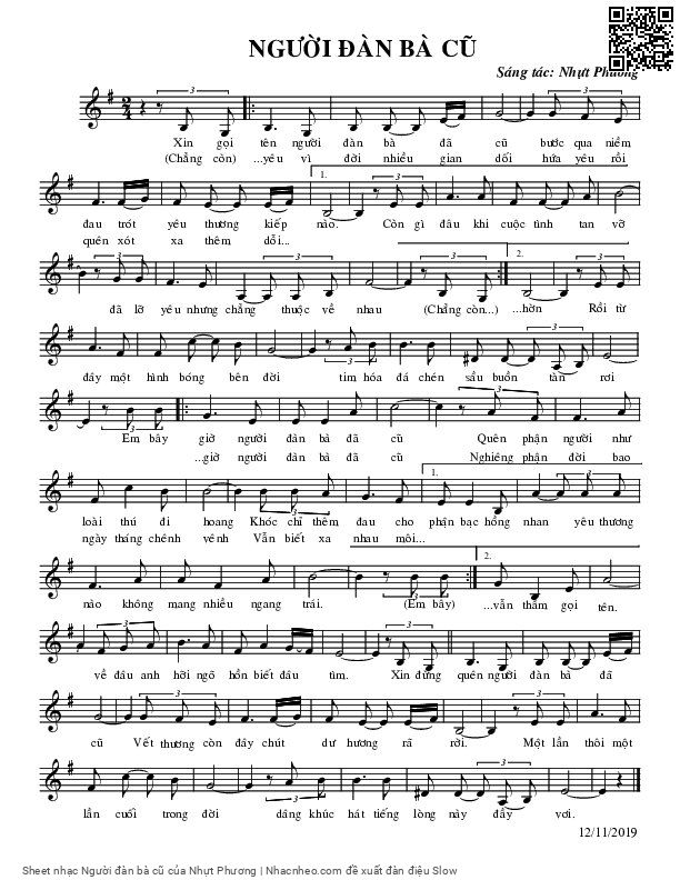Nhựt Phương Xin gọi tên người đàn bà đã cũ Bước qua niềm đau trót yêu thương kiếp nào [PDF] [Sheet] [Lyrics] [Mp4/Midi]