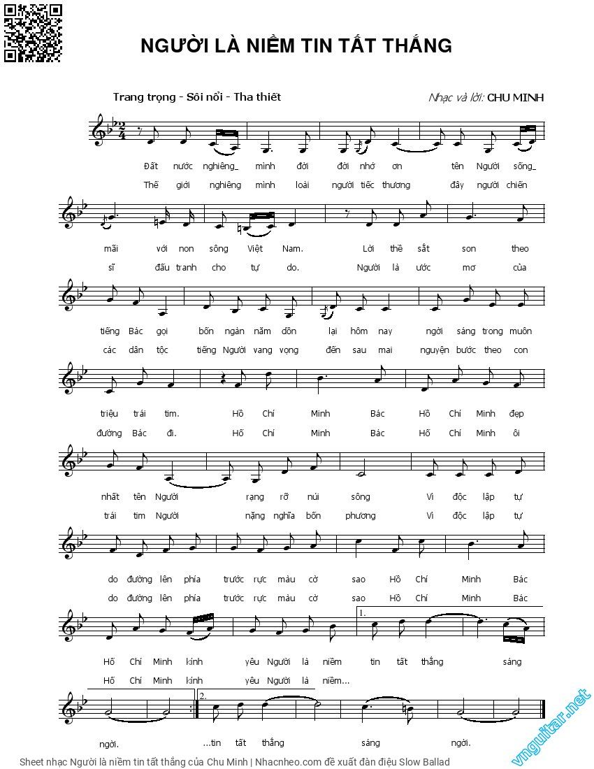The Videos/audios Người là niềm tin tất thắng by Chu Minh were embed from Youtube, Musescore or the other 3rd links. Videos are subject to 3rd's copyright control and may be removed by YouTube's copyright rules and 3rd's policies or maybe included advertisements. If you cannot access to these songs, this mean that have been removed.