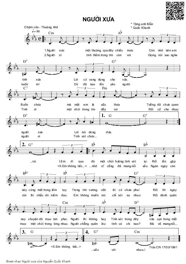 Nguyễn Quốc Khanh Người xưa một thoáng qua đây chiều mưa [PDF] [Sheet] [Lyrics] [Mp4/Midi]