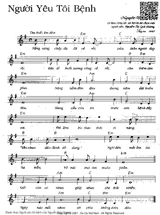 Transposition is the process of moving a song's melody and chords up or down in pitch by a constant interval. The direction of the transposition tool is indicated by a plus (+) sign for up and a minus (-) sign for down. Hover mouse over chords signs to see the chords chart of Người yêu tôi bệnh song.