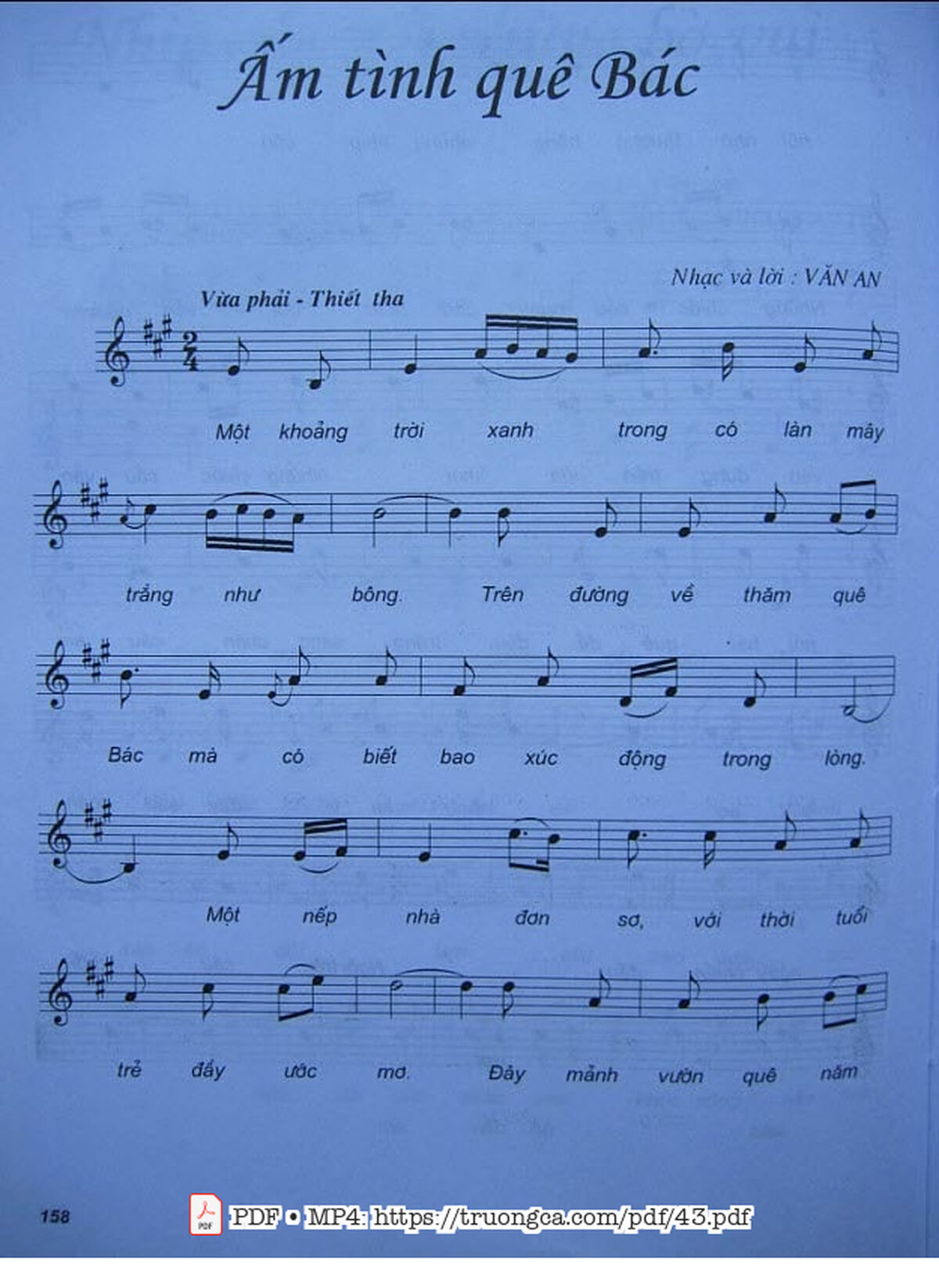 Văn An Một khoảng trời xanh trong Có làn mây trắng như bông [PDF] [Sheet] [Lyrics] [Mp4/Midi]