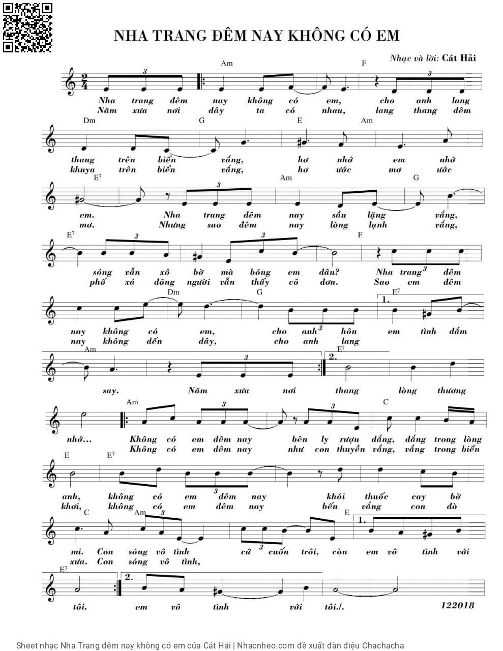 Cát Hải Nha Trang đêm nay không có em [PDF] [Sheet] [Lyrics] [Mp4/Midi]