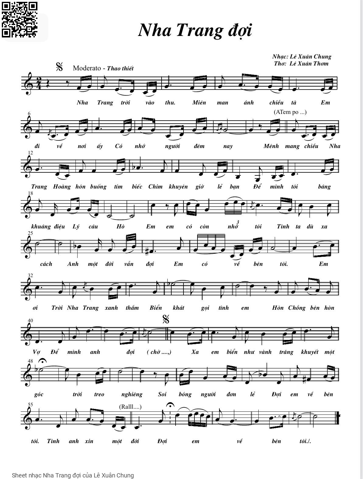 Lê Xuân Chung Nha Trang trời vào Thu miên man ánh chiều tà [PDF] [Sheet] [Lyrics] [Mp4/Midi]