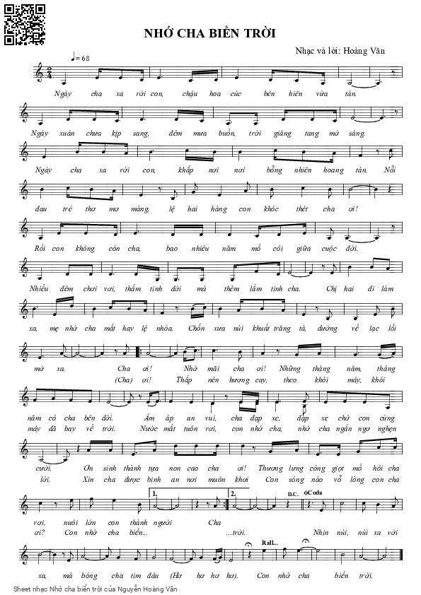 Nguyễn Hoàng Văn Ngày cha xa rời tôi chậu hoa cúc bên hiên vừa tàn [PDF] [Sheet] [Lyrics] [Mp4/Midi]