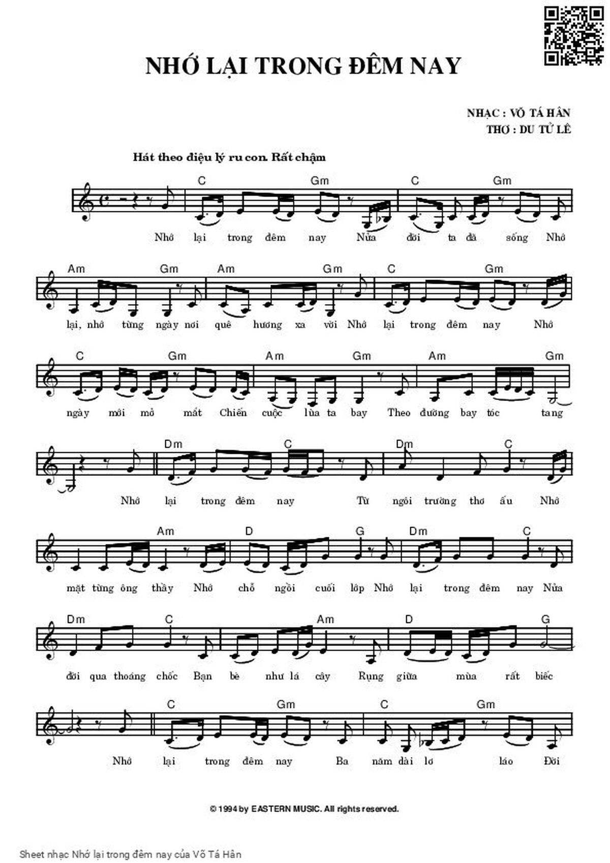 Võ Tá Hân Nhớ lại trong đêm nay Nửa đời ta đã sống [PDF] [Sheet] [Lyrics] [Mp4/Midi]