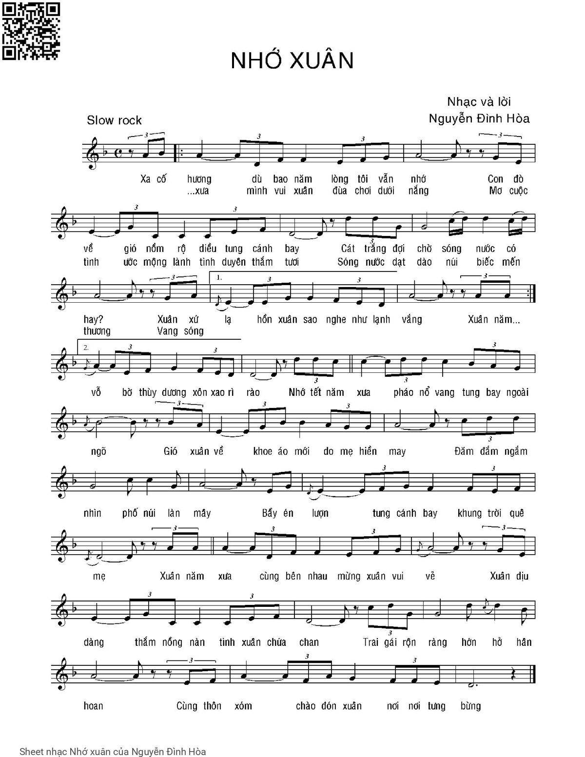 Nguyễn Đình Hòa Xa cố hương dù bao năm lòng tôi vẫn nhớ [PDF] [Sheet] [Lyrics] [Mp4/Midi]