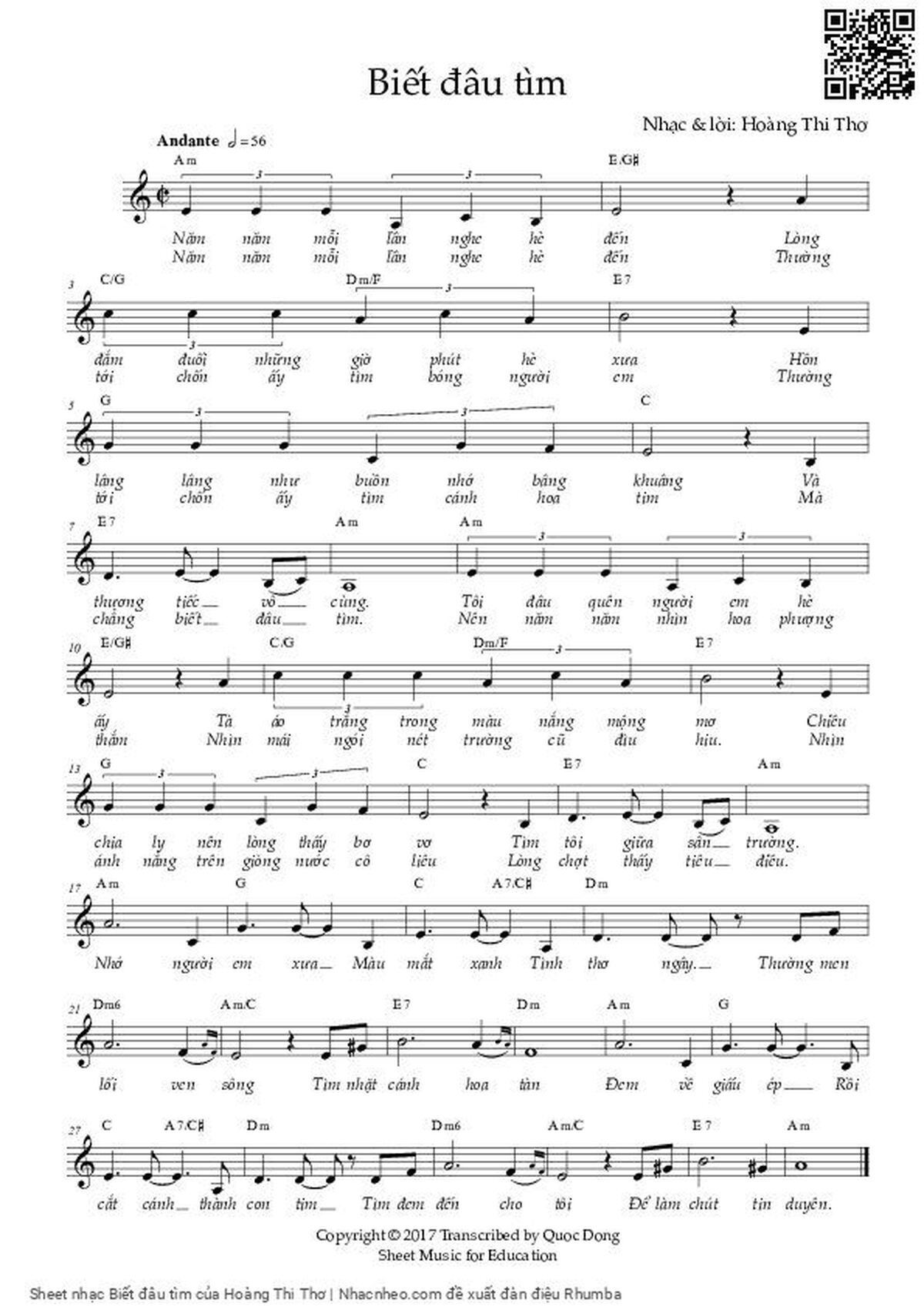 Hoàng Thi Thơ Năm năm mỗi lần nghe hè đến Lòng đắm đuối những giờ phút hè xưa [PDF] [Sheet] [Lyrics] [Mp4/Midi]