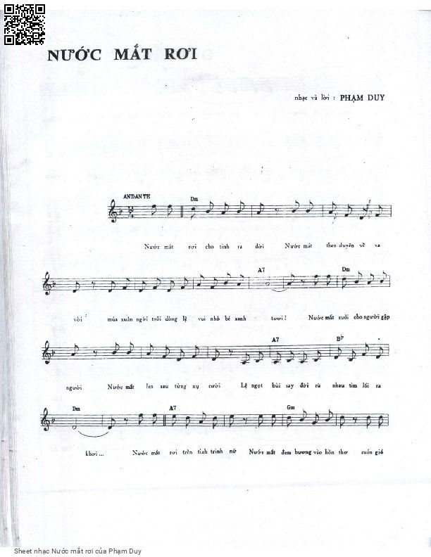 Phạm Duy Nước mắt rơi cho tình ra đời Nước mắt theo duyên về xa vời [PDF] [Sheet] [Lyrics] [Mp4/Midi]
