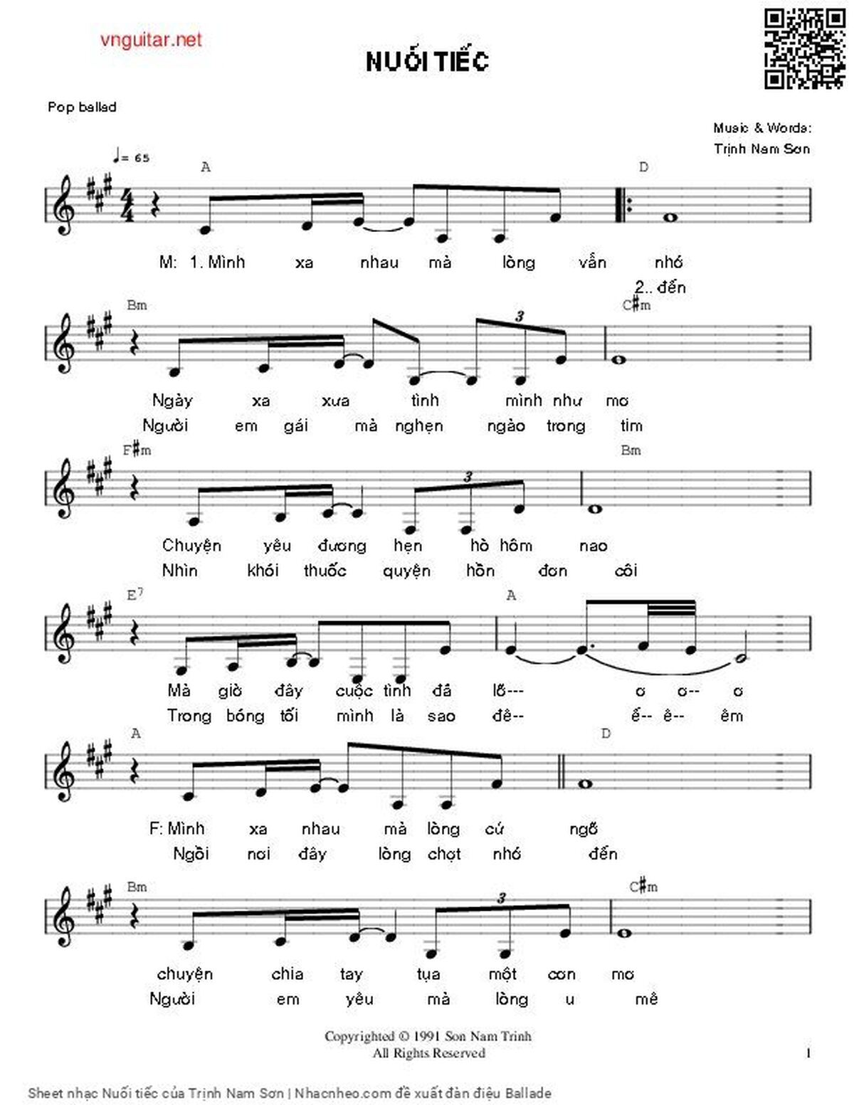 Trịnh Nam Sơn Mình xa nhau mà lòng vẫn nhớ Ngày xa xưa [PDF] [Sheet] [Lyrics] [Mp4/Midi]