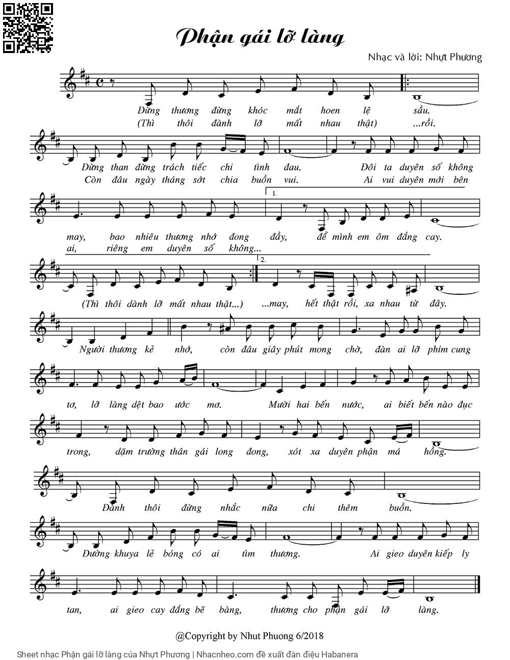 Nhựt Phương Đừng thương đừng khóc mắt hoen lệ sầu [PDF] [Sheet] [Lyrics] [Mp4/Midi]