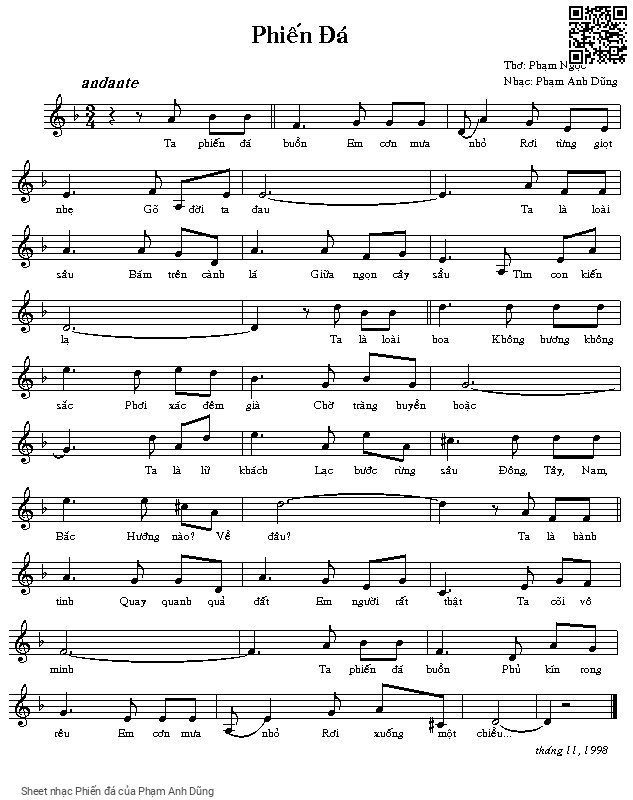 The first sentence: Ta phiến đá buồn em cơn mưa nhỏ Rơi từng giọt nhẹ gõ đời ta đau