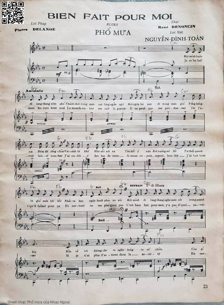 Nhạc Ngoại Một mình buồn đi lang thang trên phố Thánh thót tiếng mưa xui lòng ngẩn ngơ [PDF] [Sheet] [Lyrics] [Mp4/Midi]