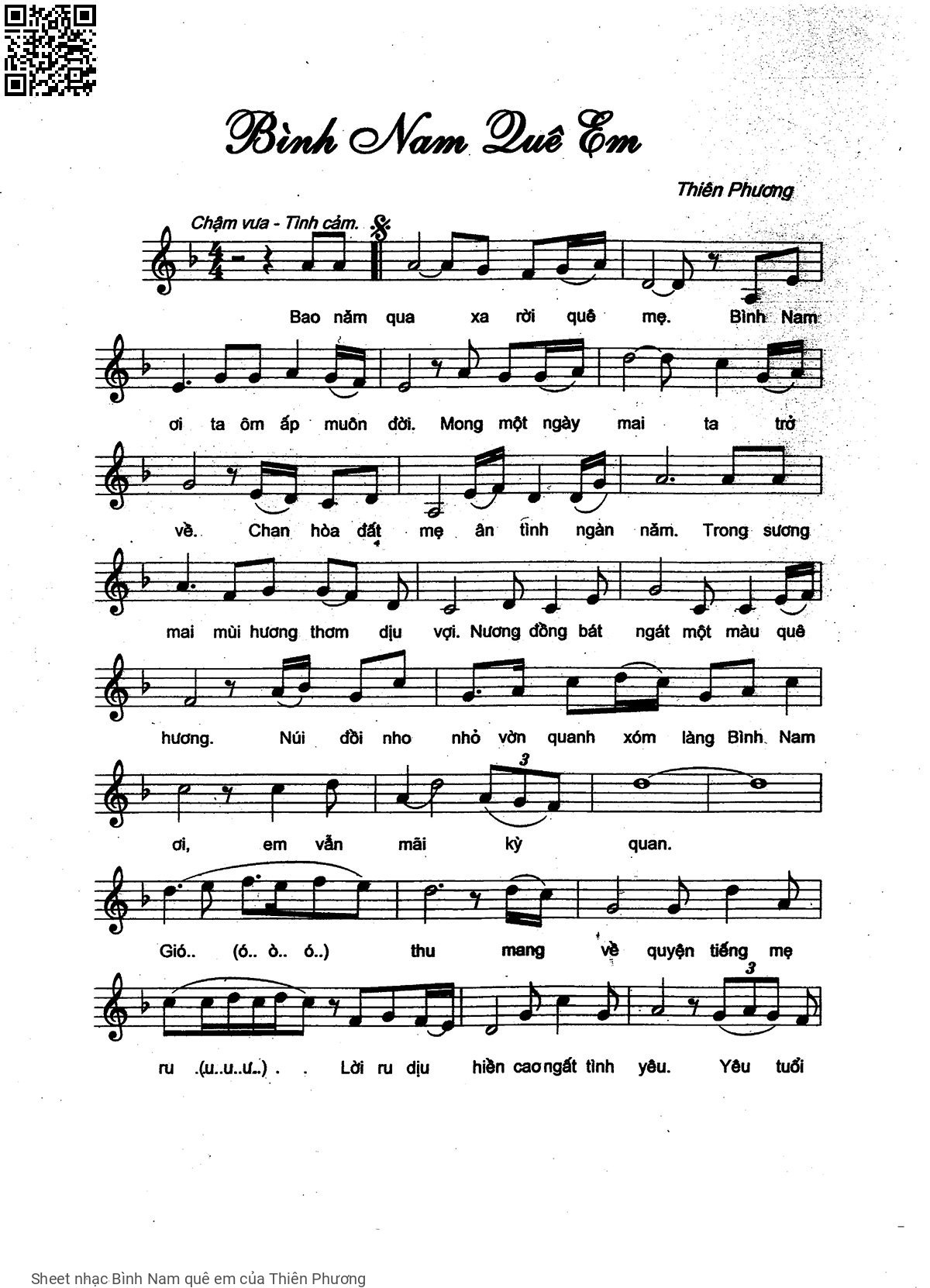 Thiên Phương Bao năm qua xa rời quê mẹ Bình Nam ơi ta ôm ấp muôn đời [PDF] [Sheet] [Lyrics] [Mp4/Midi]