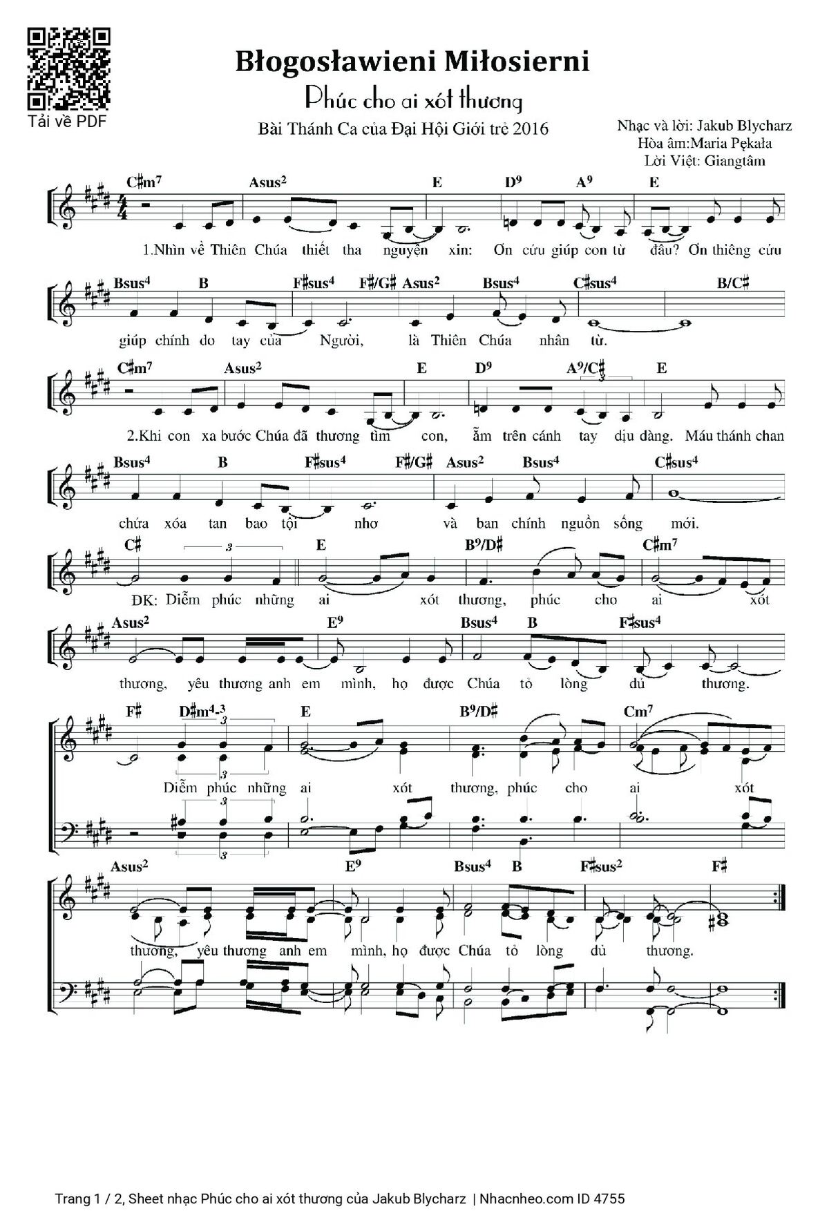 The Videos/audios Phúc cho ai xót thương by Jakub Blycharz were embed from Youtube, Musescore or the other 3rd links. Videos are subject to 3rd's copyright control and may be removed by YouTube's copyright rules and 3rd's policies or maybe included advertisements. If you cannot access to these songs, this mean that have been removed.