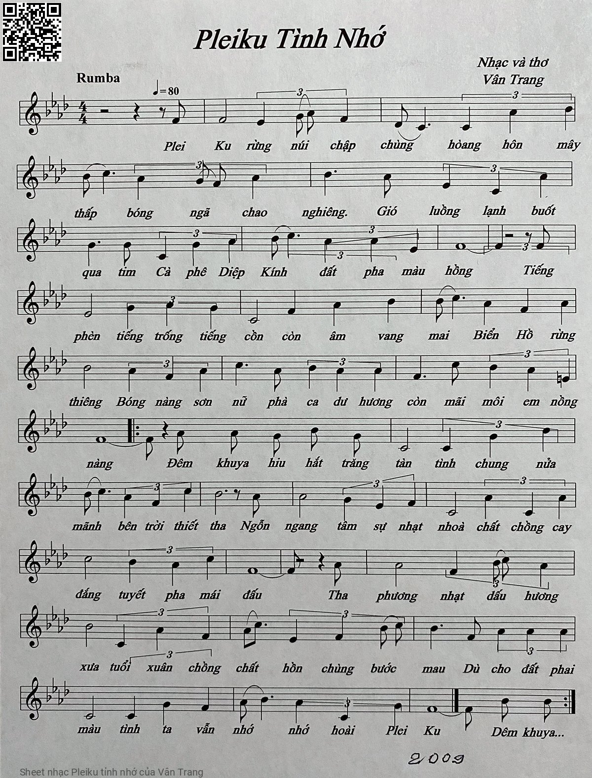 Vân Trang Pleiku rừng núi chập chùng Hoàng hôn mây thấp bóng ngã chao nghiêng [PDF] [Sheet] [Lyrics] [Mp4/Midi]