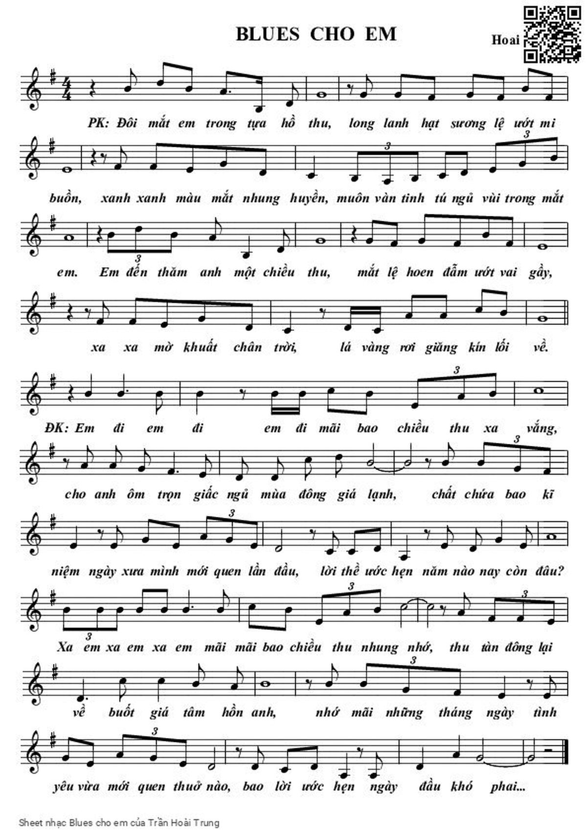 Trần Hoài Trung Đôi mắt em trong tựa hồ thu Long lanh hạt sương lệ ướt mi buồn [PDF] [Sheet] [Lyrics] [Mp4/Midi]