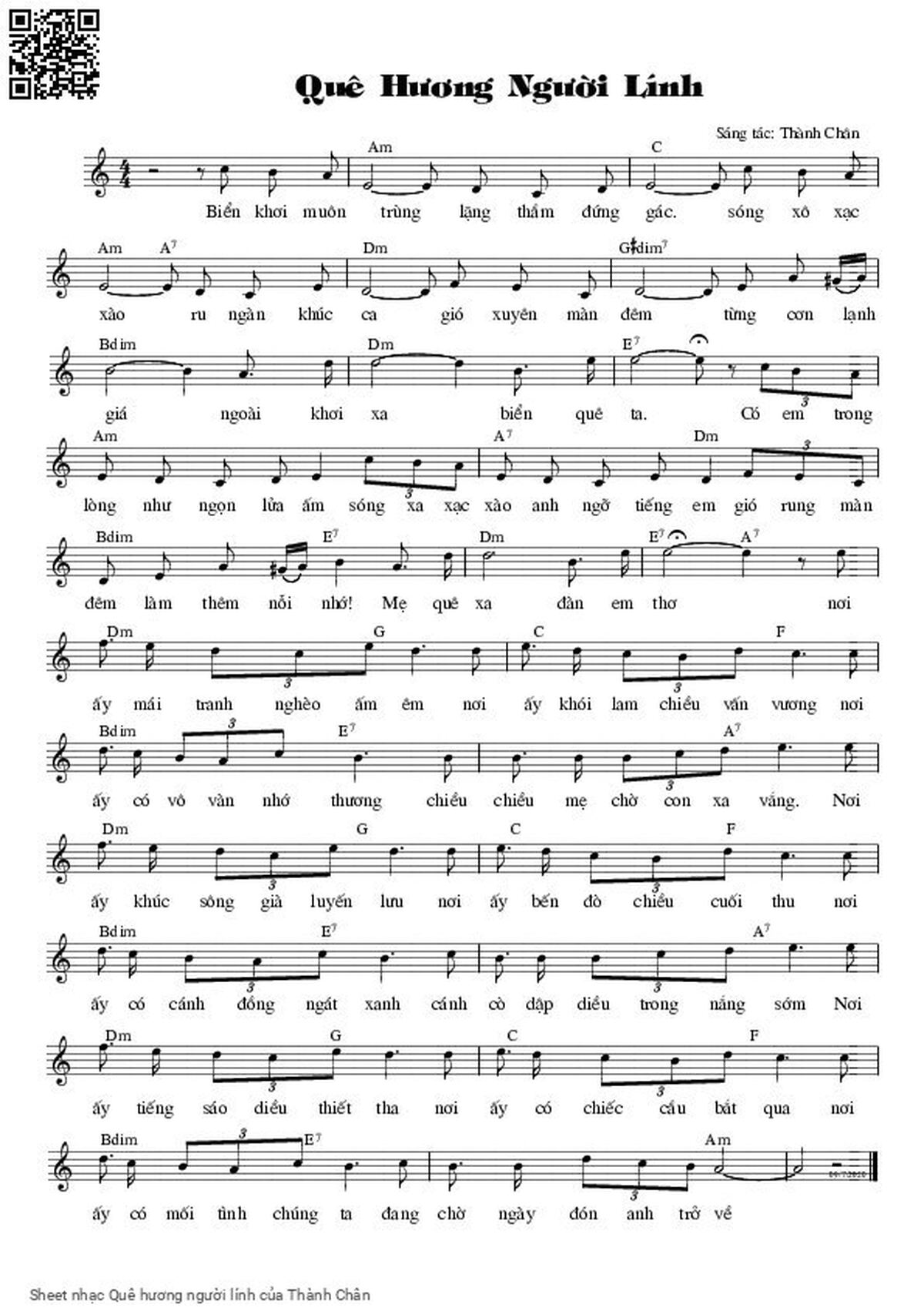 Thành Chân Biển khơi muôn trùng lặng thầm đứng gác [PDF] [Sheet] [Lyrics] [Mp4/Midi]