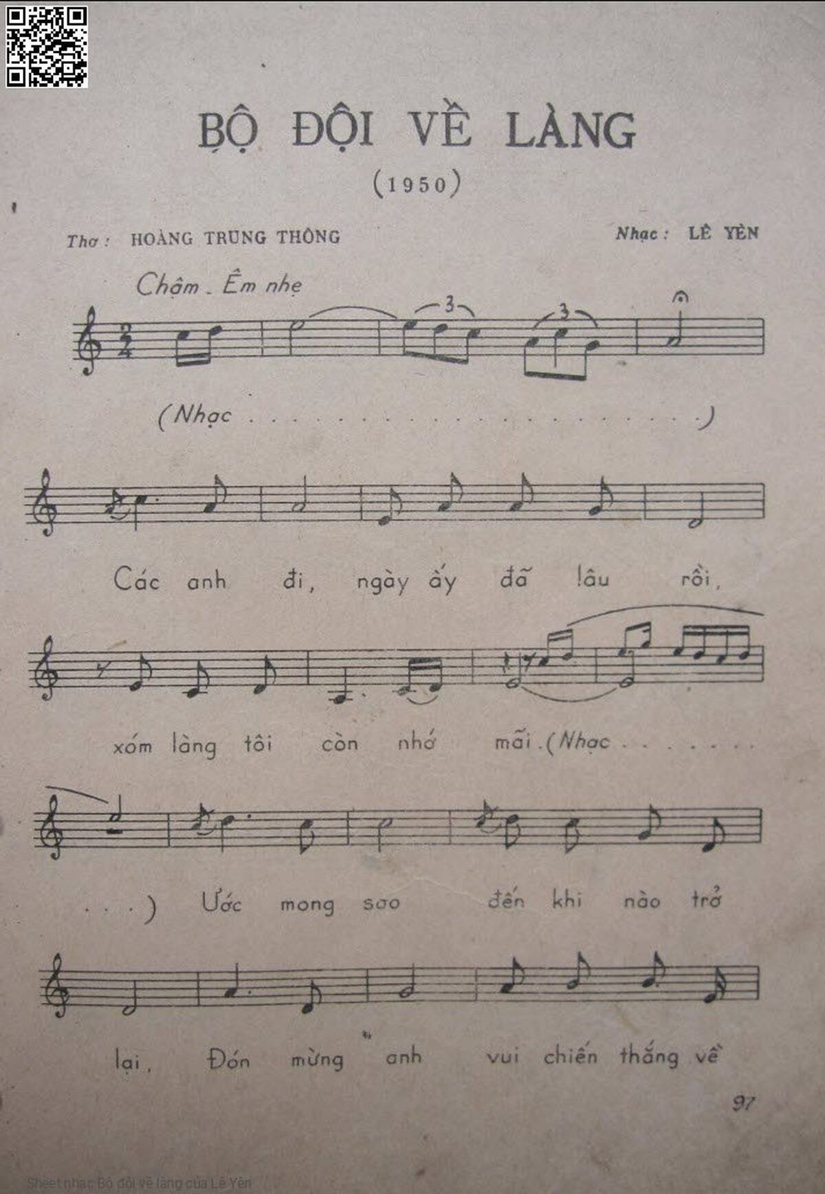 Lê Yên Các anh đi ngày ấy đã lâu rồi Xóm làng tôi còn nhớ mãi [PDF] [Sheet] [Lyrics] [Mp4/Midi]
