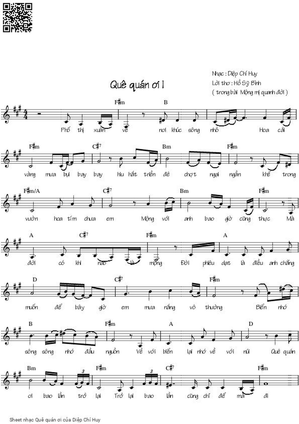 Diệp Chí Huy Quê quán ơi bao lần trở lại Trở lại bao lần cũng chỉ để mà đi [PDF] [Sheet] [Lyrics] [Mp4/Midi]