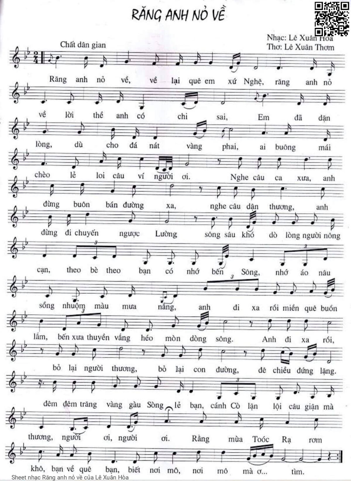 Lê Xuân Hòa Răng anh nỏ về về lại quê em xứ Nghệ [PDF] [Sheet] [Lyrics] [Mp4/Midi]