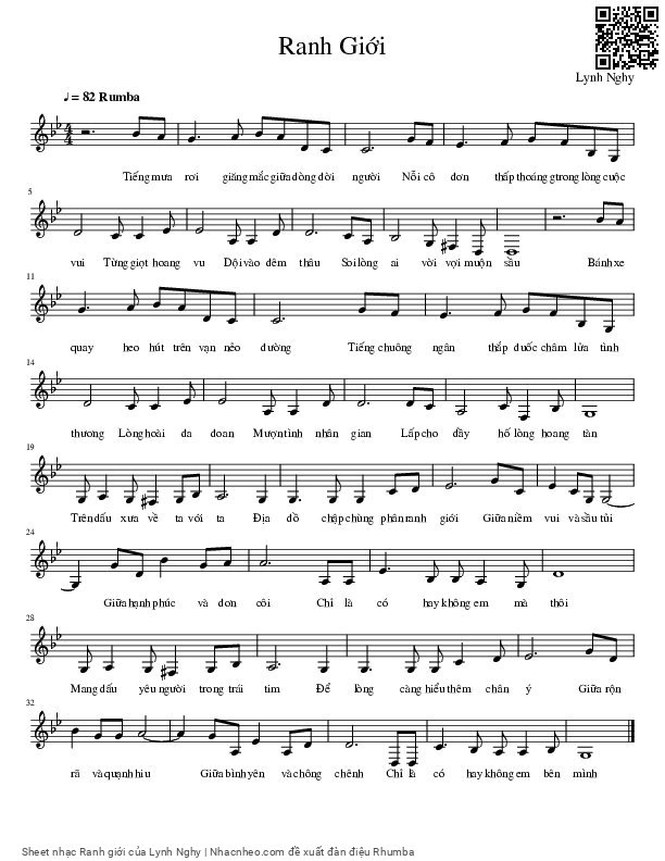 Lynh Nghy Tiếng mưa rơi giăng mắc giữa dòng đời người [PDF] [Sheet] [Lyrics] [Mp4/Midi]