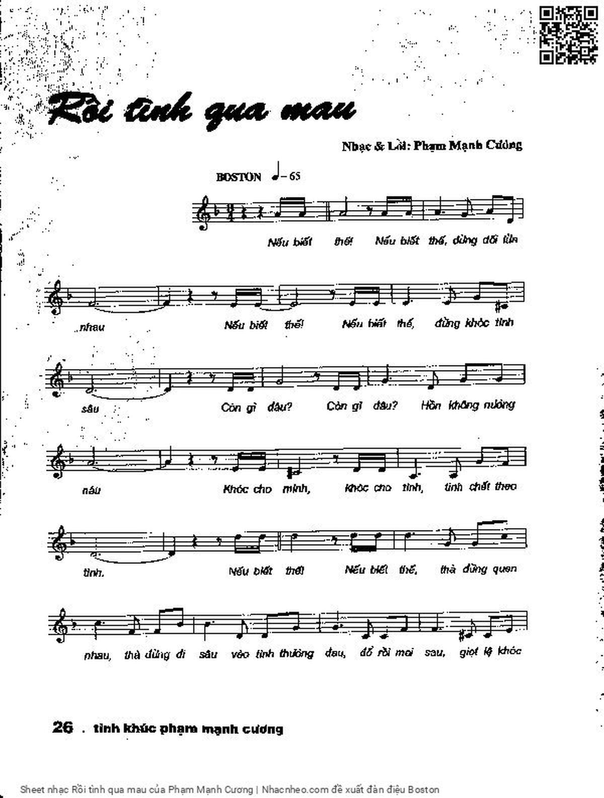 Phạm Mạnh Cương Nếu biết thế nếu biết thế đừng dối lừa nhau [PDF] [Sheet] [Lyrics] [Mp4/Midi]