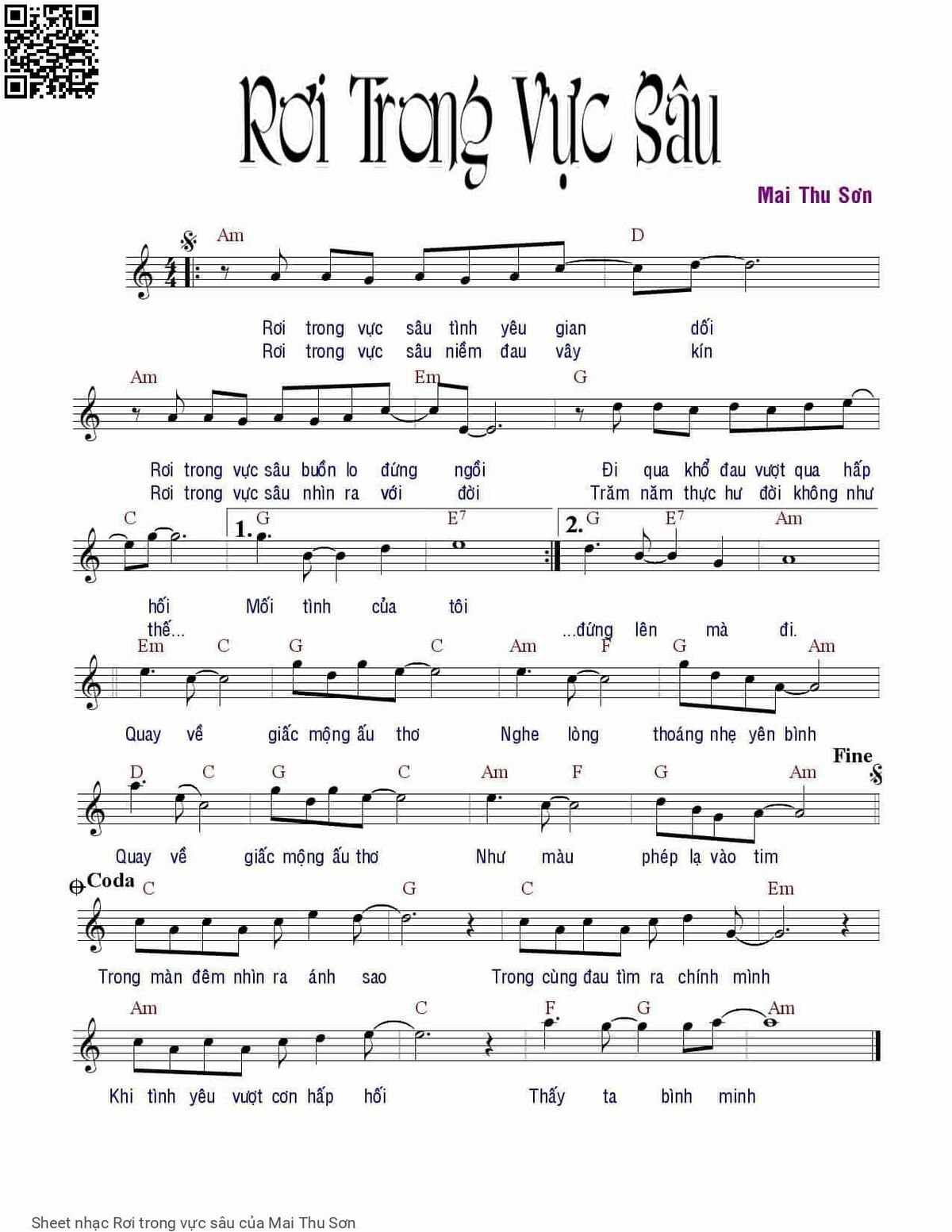 The first sentence: Rơi trong vực sâu màn đêm u tối Rơi trong vực sâu buồn lo đứng ngồi
