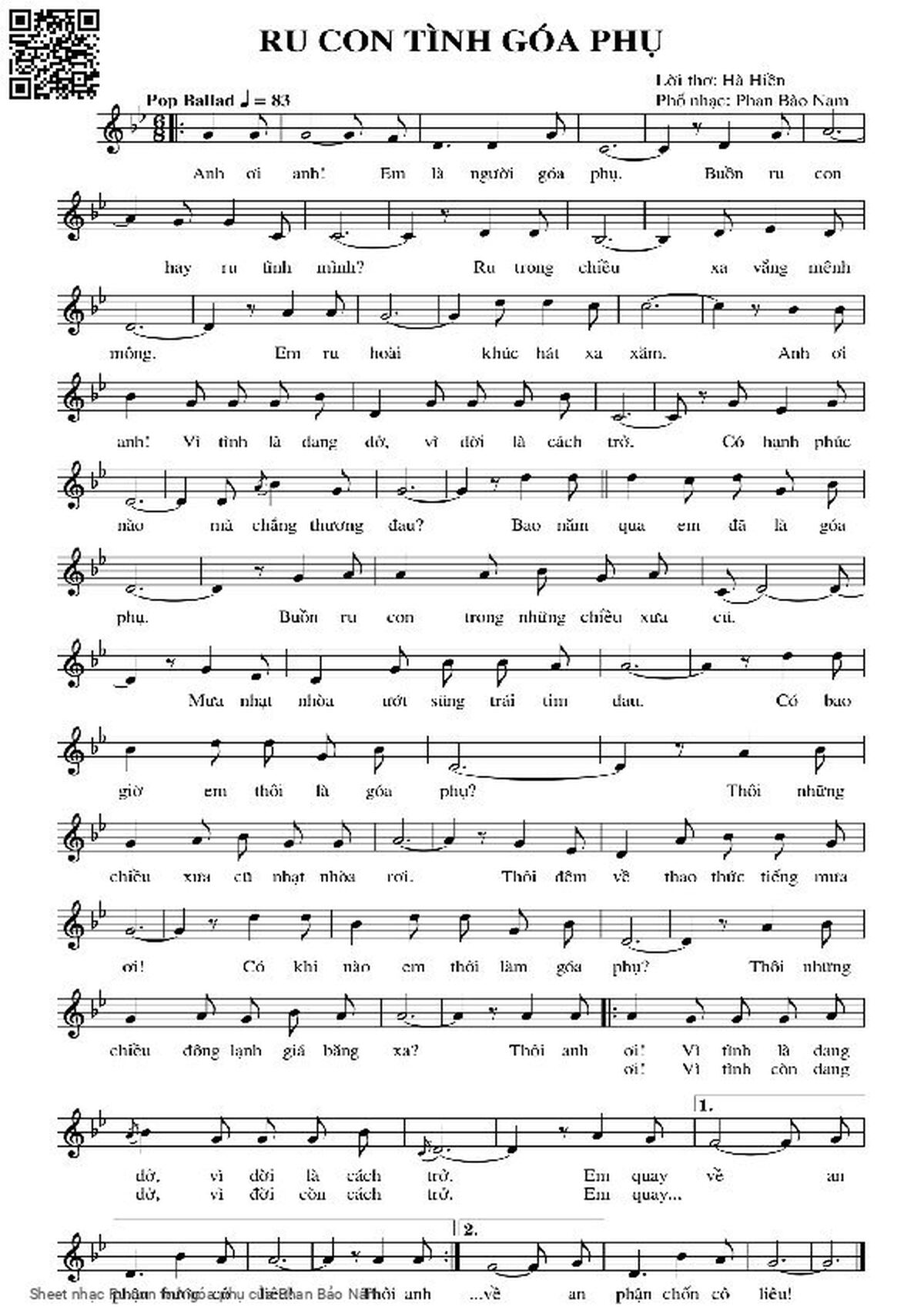 Phan Bảo Nam Anh ơi anh Em là người góa phụ Buồn ru con hay ru tình mình [PDF] [Sheet] [Lyrics] [Mp4/Midi]