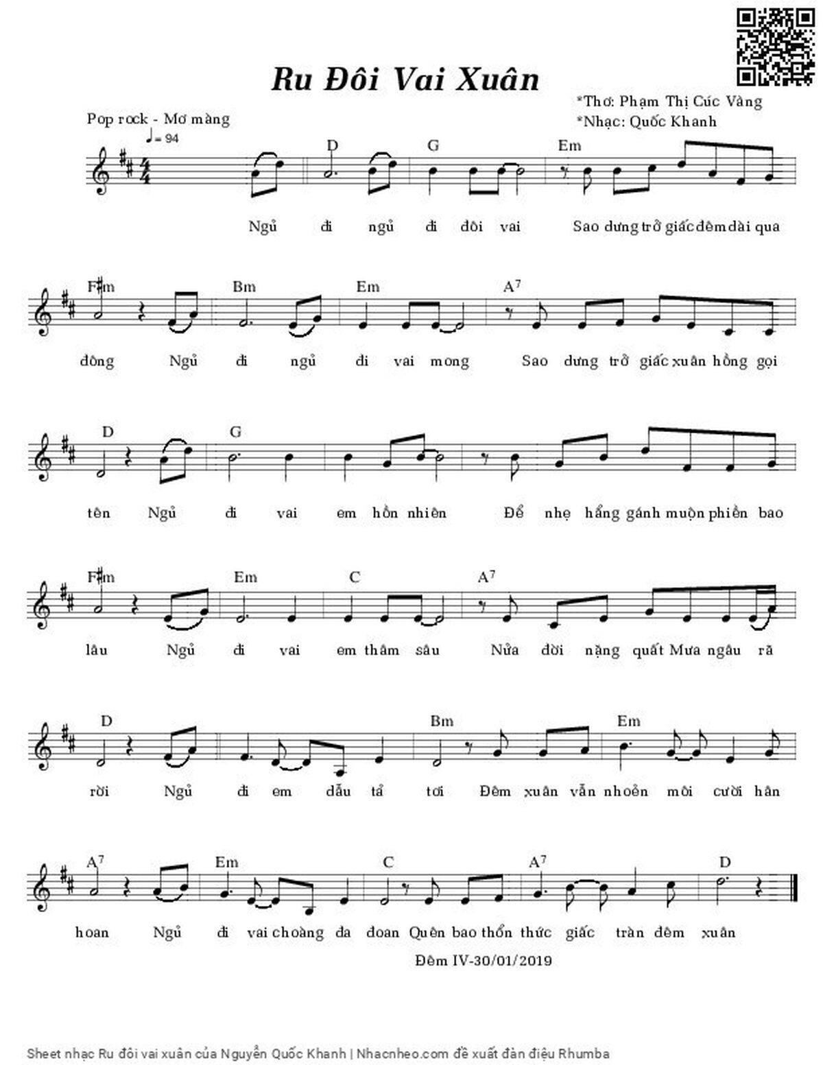 Nguyễn Quốc Khanh Ngủ đi ngủ đi đôi vai Sao dưng trở giấc đêm dài qua đông [PDF] [Sheet] [Lyrics] [Mp4/Midi]