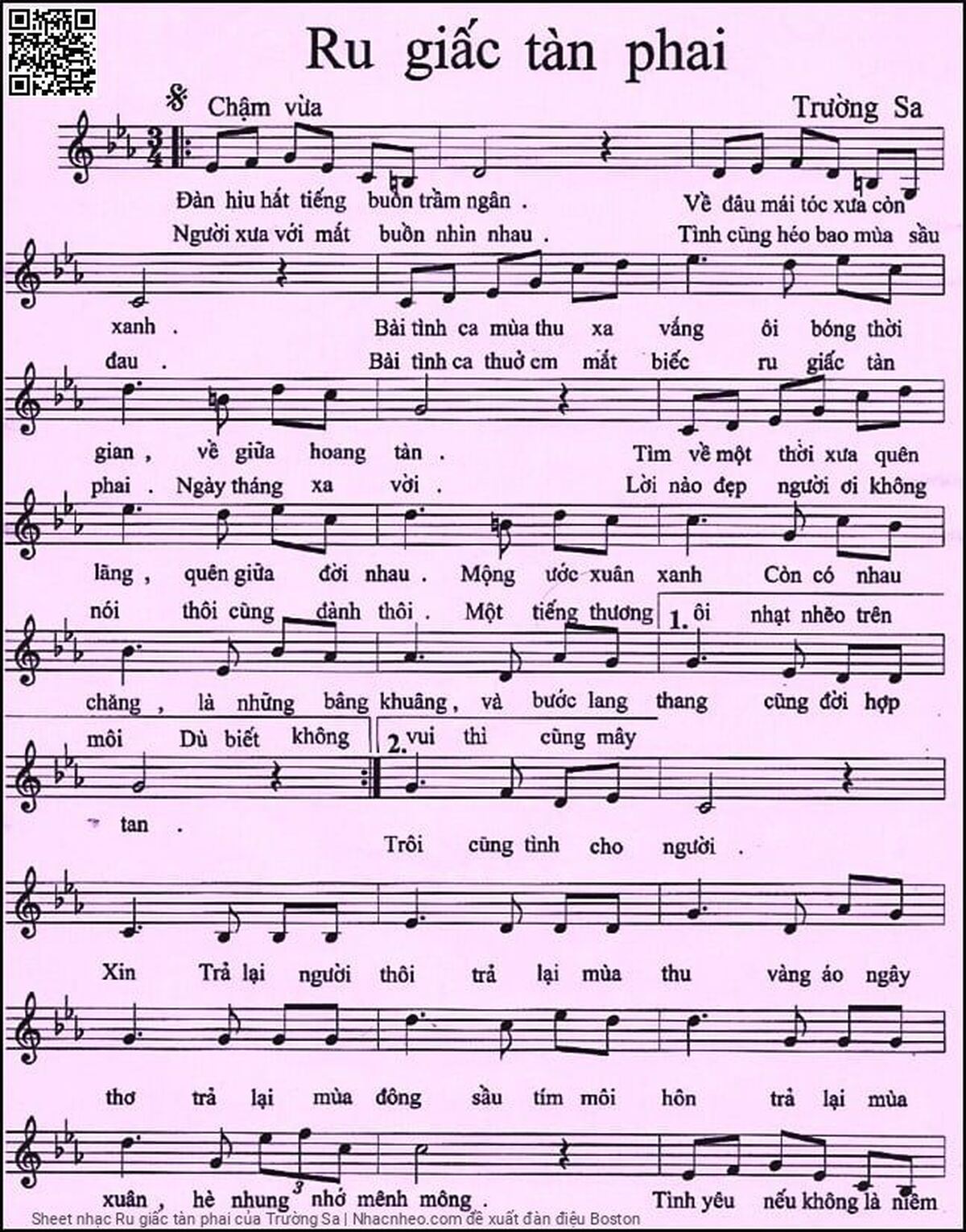 Trường Sa Đàn hiu hắt tiếng buồn trầm ngân Về đâu mái tóc xưa còn xanh [PDF] [Sheet] [Lyrics] [Mp4/Midi]