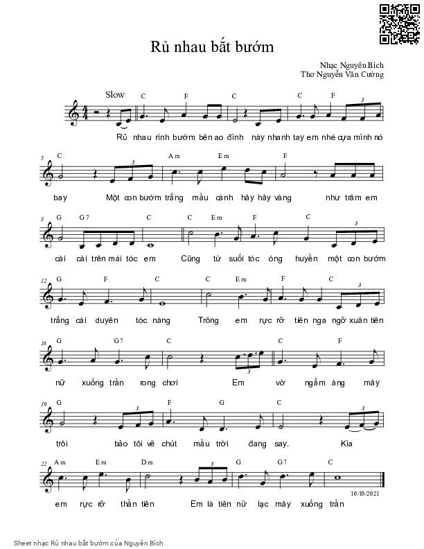 Nguyên Bích Rủ nhau rình bướm bên ao đình Này nhanh tay em nhé cựa mình nó bay [PDF] [Sheet] [Lyrics] [Mp4/Midi]