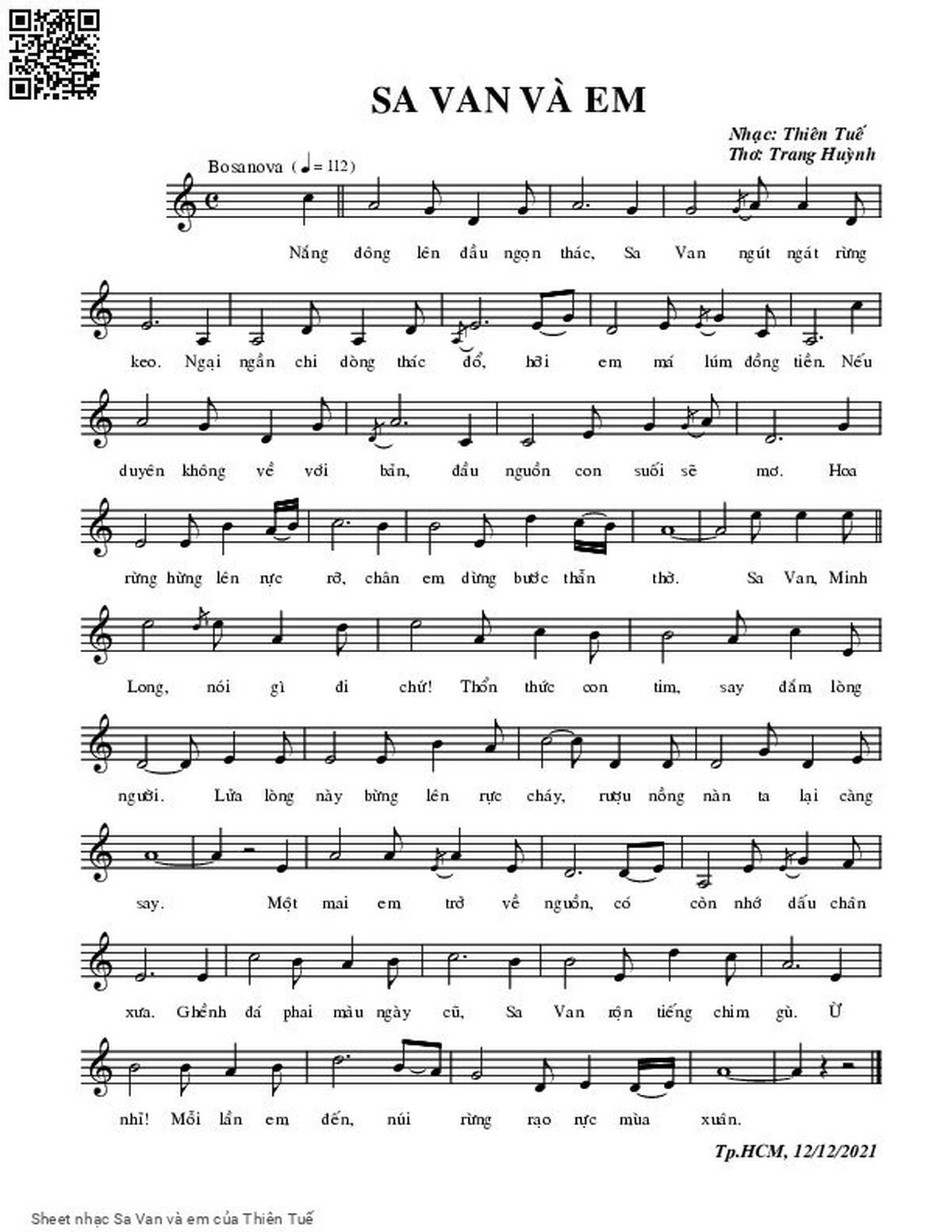 Thiên Tuế Nắng đông lên đầu ngọn thác Sa Van ngút ngát rừng keo [PDF] [Sheet] [Lyrics] [Mp4/Midi]