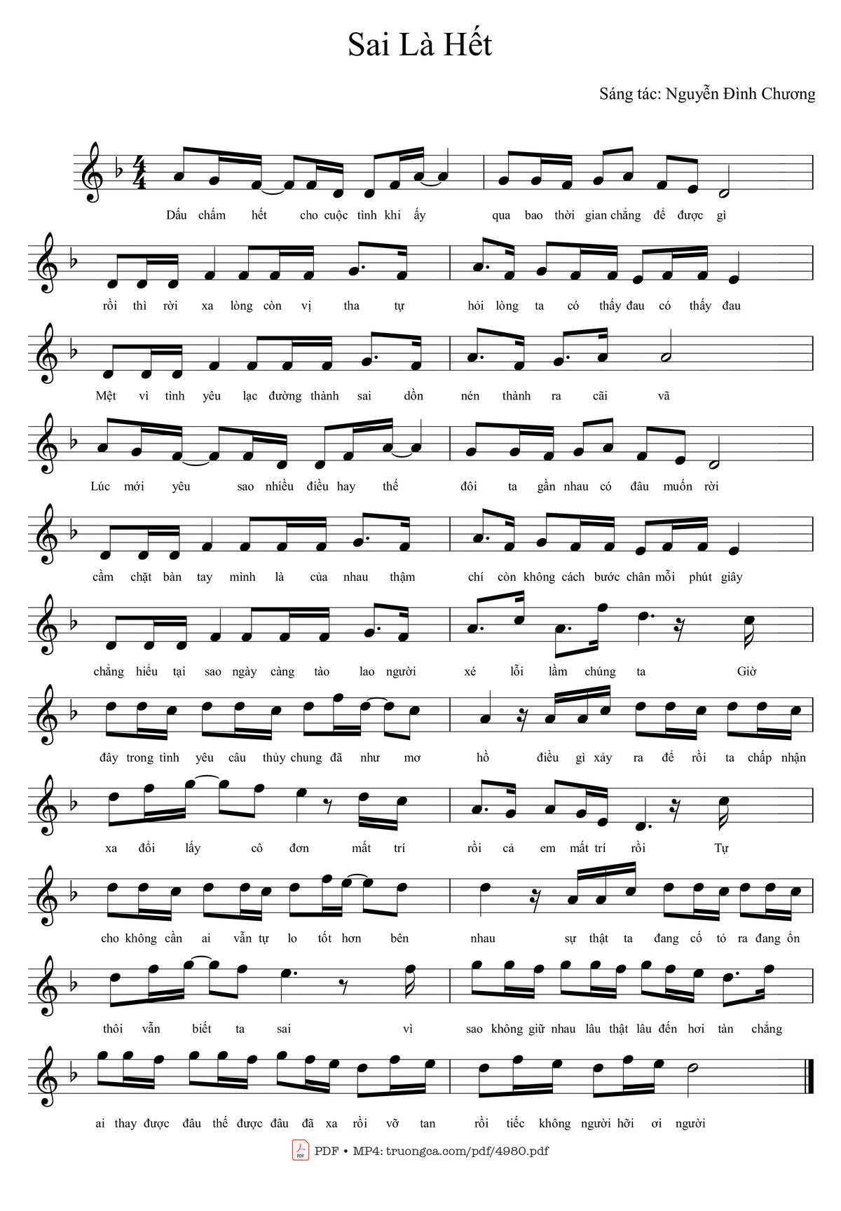 Nguyễn Đình Chương Dấu chấm hết cho cuộc tình khi ấy Qua bao thời gian chẳng để được gì [PDF] [Sheet] [Lyrics] [Mp4/Midi]