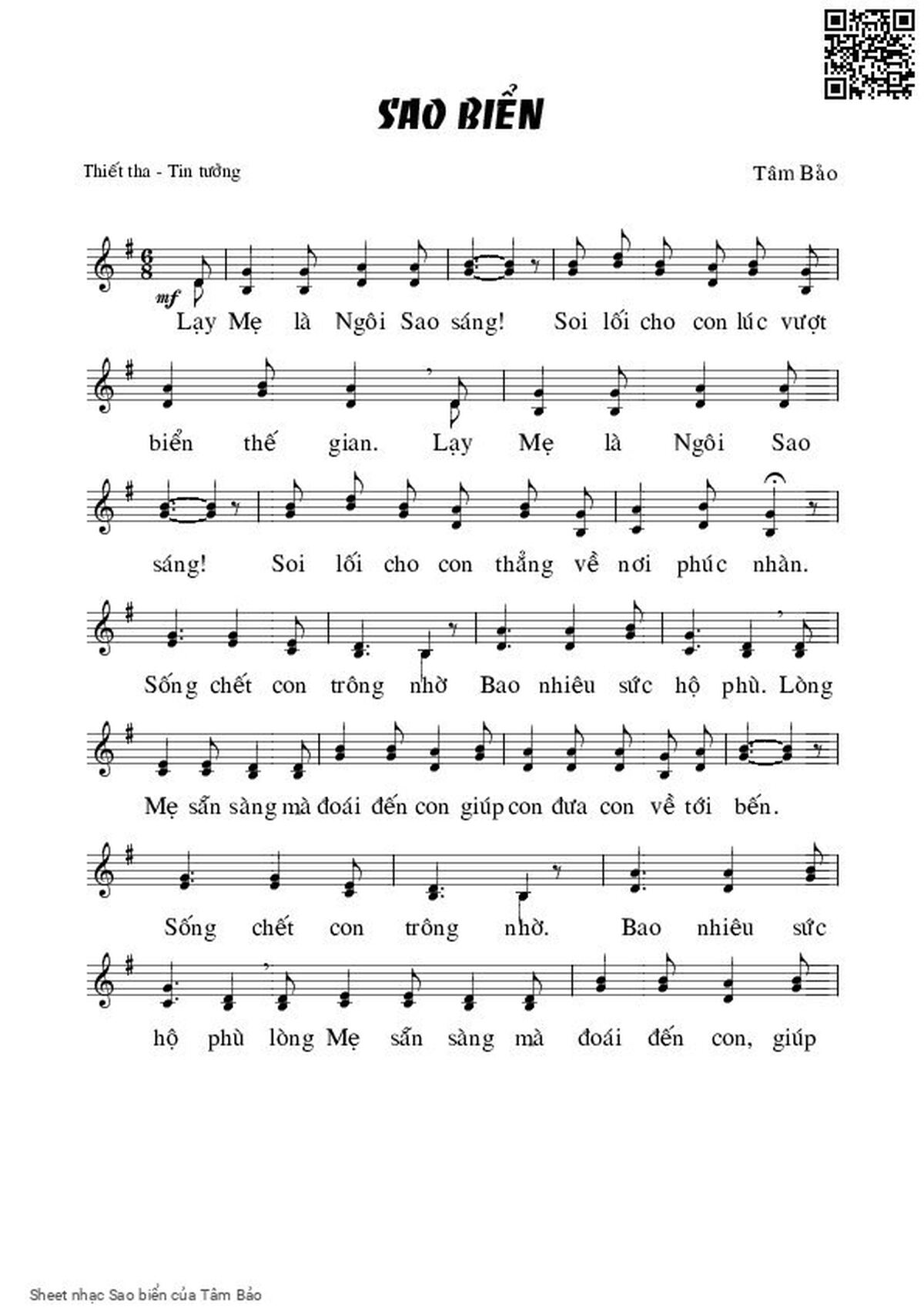 Tâm Bảo Lạy mẹ là ngôi sao sáng Soi lối cho con lúc vượt biển thế gian [PDF] [Sheet] [Lyrics] [Mp4/Midi]