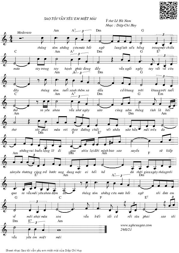 Diệp Chí Huy Tháng tám những cơn mưa bất ngờ Tôi đưa em về ngôi nhà màu son [PDF] [Sheet] [Lyrics] [Mp4/Midi]