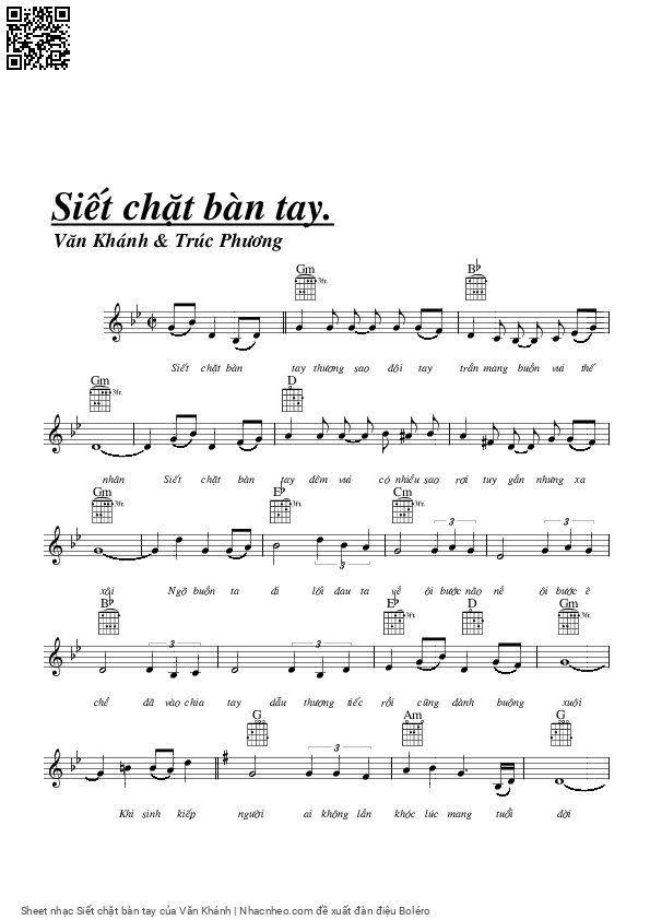 Văn Khánh Siết chặt bàn tay thương sao đôi tay trần [PDF] [Sheet] [Lyrics] [Mp4/Midi]