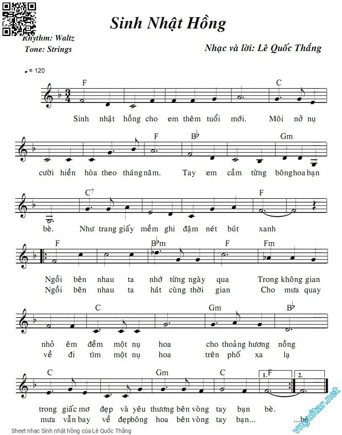 Transposition is the process of moving a song's melody and chords up or down in pitch by a constant interval. The direction of the transposition tool is indicated by a plus (+) sign for up and a minus (-) sign for down. Hover mouse over chords signs to see the chords chart of Sinh nhật hồng song.