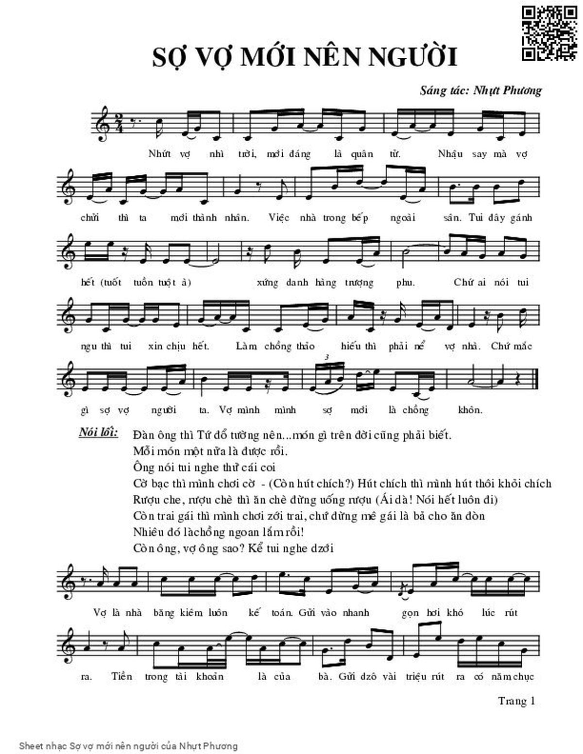 Nhựt Phương Nhứt vợ nhì trời mới đáng là quân tử [PDF] [Sheet] [Lyrics] [Mp4/Midi]
