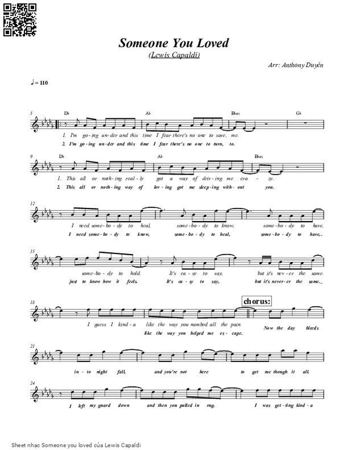 Sheet PDF with the same name Someone you loved: