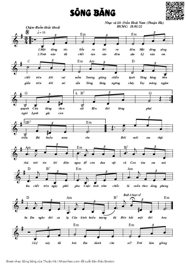 Thuận Hà Một dòng tóc liễu ru lời ru đêm Một dòng sông chết trên đôi vai mềm [PDF] [Sheet] [Lyrics] [Mp4/Midi]