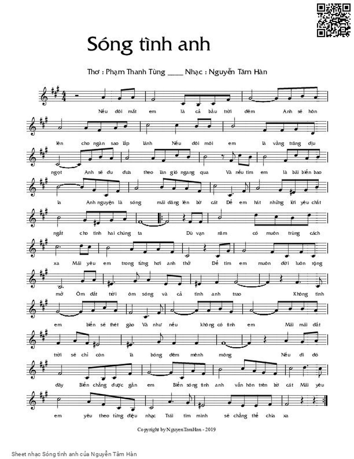 Nguyễn Tâm Hàn Nếu đôi mắt em là cả bầu trời đêm [PDF] [Sheet] [Lyrics] [Mp4/Midi]
