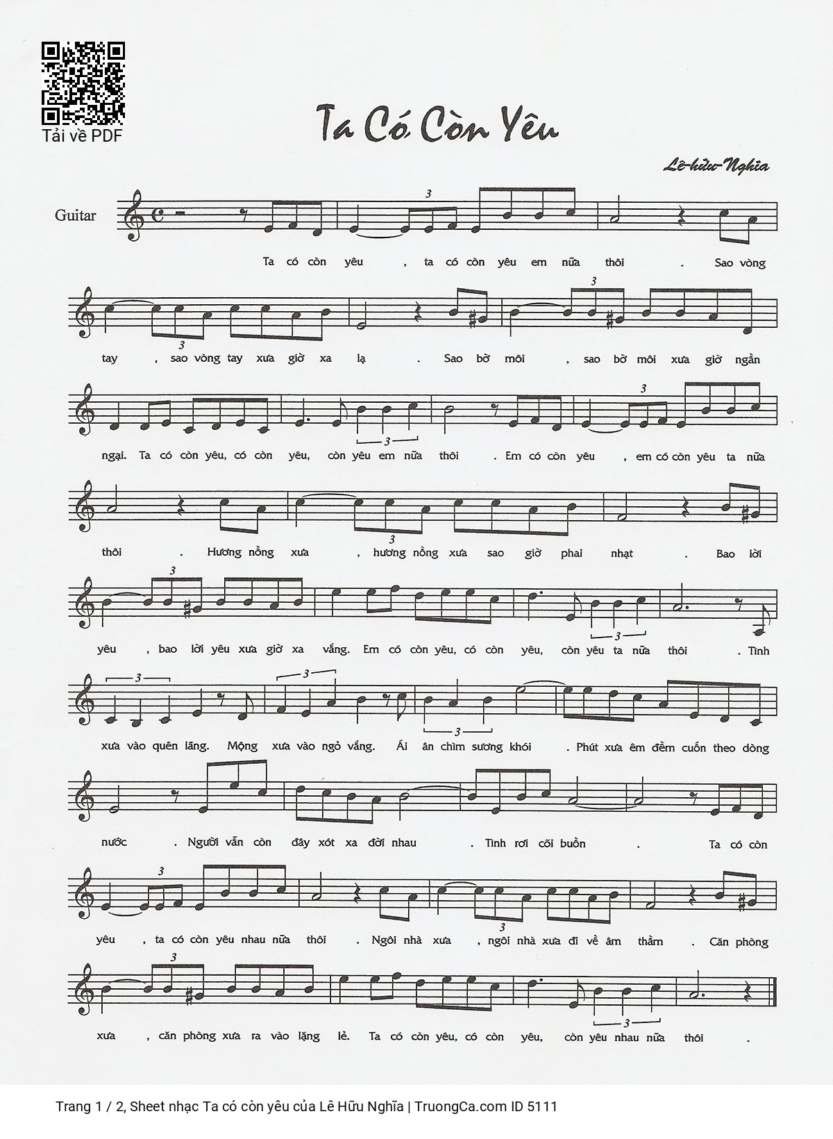 Lê Hữu Nghĩa Ta có còn yêu ta có còn yêu em nữa thôi [PDF] [Sheet] [Lyrics] [Mp4/Midi]