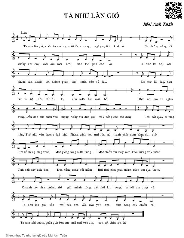 Mai Anh Tuấn Ta như làn gió cuốn áo em bay vuốt tóc em say [PDF] [Sheet] [Lyrics] [Mp4/Midi]
