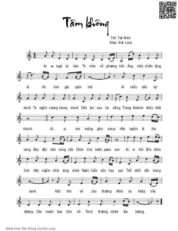 The Videos/audios Tâm không by Đức Long were embed from Youtube, Musescore or the other 3rd links. Videos are subject to 3rd's copyright control and may be removed by YouTube's copyright rules and 3rd's policies or maybe included advertisements. If you cannot access to these songs, this mean that have been removed.
