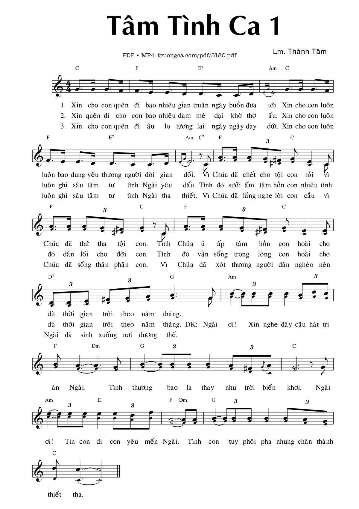 Lm. Thành Tâm Xin cho con quên đi bao nhiêu gian truân ngày buồn đưa tới [PDF] [Sheet] [Lyrics] [Mp4/Midi]