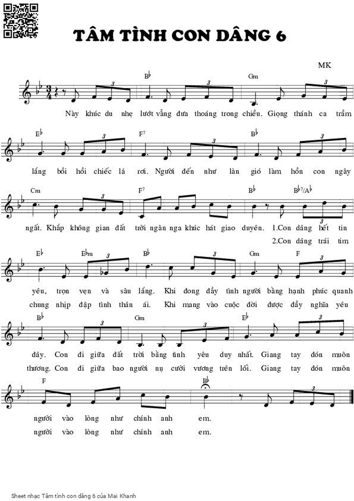 Mai Khanh Này khúc du nhẹ lướt vẳng đưa thoáng êm đềm [PDF] [Sheet] [Lyrics] [Mp4/Midi]