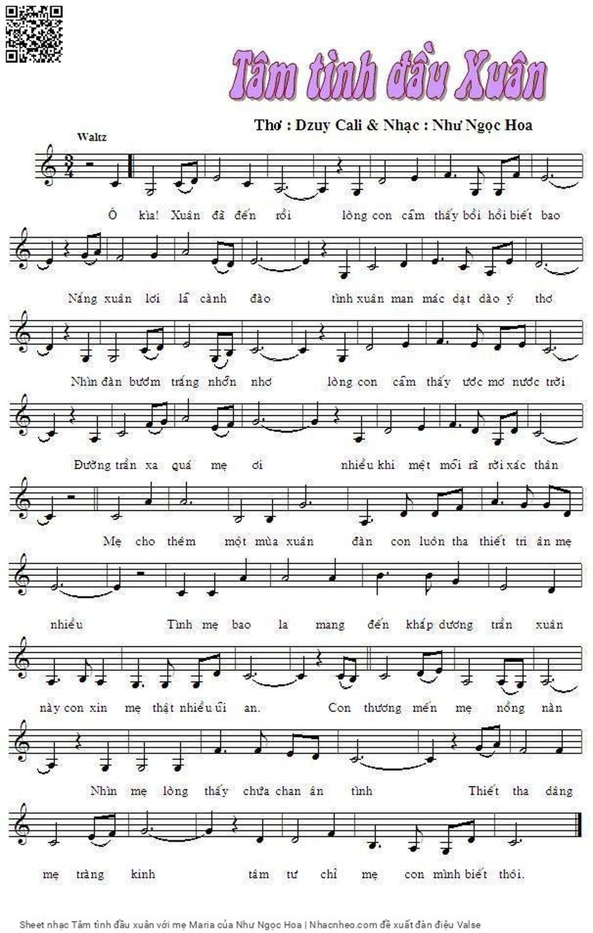 Như Ngọc Hoa Ô kìa xuân đã đến rồi Lòng con cảm thấy bồi hồi biết bao [PDF] [Sheet] [Lyrics] [Mp4/Midi]