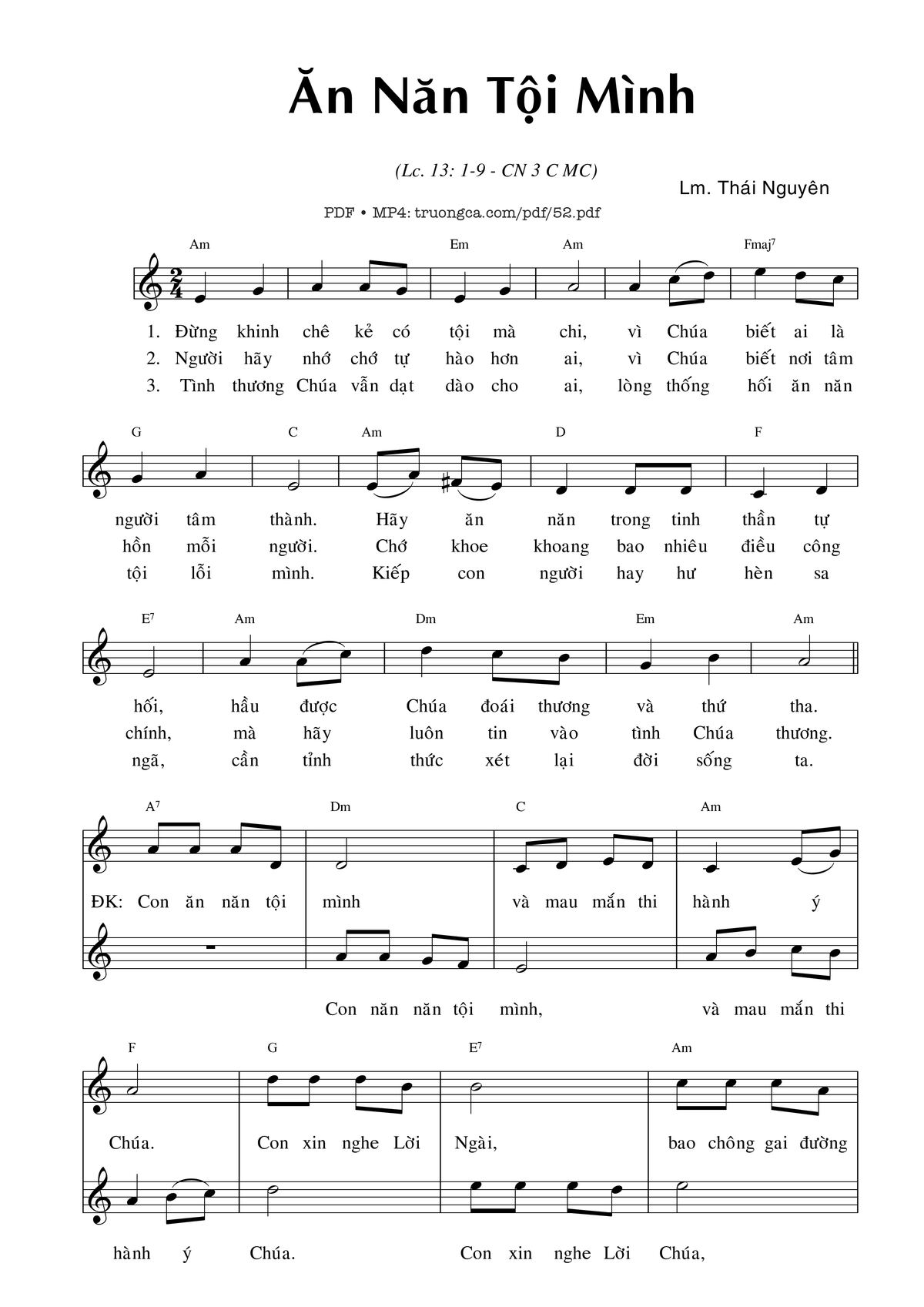 Lm. Thái Nguyên Đừng khinh chê kẻ có tội mà chi Vì Chúa biết ai là người tâm thành [PDF] [Sheet] [Lyrics] [Mp4/Midi]